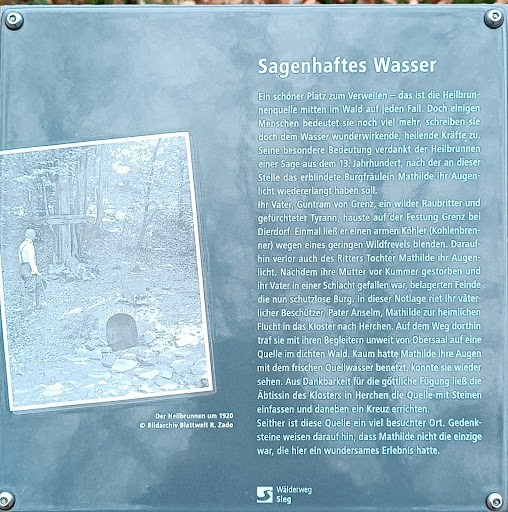 Read moreHier gibt es eine gefasste Quelle. Der Ort war früher mal ein Wallfahrtsort, weil im Mittelalter der Überlieferung nach ein Burgfräulein, nachdem es sich die Augen mit dem Quellwasser ausgewaschen hatte, von Erblindung geheilt wurde. Es gibt hier eine Infotafel mit allen Hinweisen hierzu. Hier gibt es noch eine Schutzhütte sowie einen...