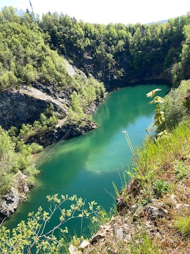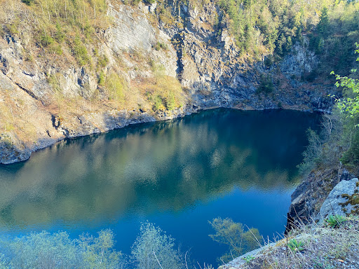 Toller, versteckt gelegener See oben auf einem Berg mit sehr steilen FelswĂ€nden. Er hat eine schöne tĂŒrkis-grĂŒne FĂ€rbung. Wenn man in Sielbach auf dem Parkplatz vor dem Viadukt parkt, kann man den See zu FuĂ bequem in ca. 20 Minuten erreichen. An der ersten Kreuzung, bei dem aufgestellten Kreuz, nimmt man den rechten Weg. An der nĂ€chsten Gabelung den linken Weg nehmen Dann kommt man an dem offiziellen Eingang, der durch einen verschlossenen Container versperrt ist und an einem alten Bunkereingang vorbei. Der See ist PrivatgelĂ€nde, wird durch Stacheldraht gesichert und wird fĂŒr Adventures genutzt. Wenn man bei den Containern und den Dixi-Klos links in den Wald geht, kann man einen ersten Blick auf den See haben. FĂŒr schwindelfreie empfiehlt sich den See rechts zu umrunden und nach ca. 100 Meter von auĂen den steilen Berg zu erklimmen. Von da aus hat man einen tollen Blick auf den See. Aber Vorsicht! Nicht zu nah an den Rand gehen, es besteht tödliche Absturzgefahr! Folgt man von da aus dem See weiter, bis ungefĂ€hr zur Mitte, kann man ĂŒber den Waldweg, der zum Funkmasten fĂŒhrt, wieder bequem zurĂŒck zum...