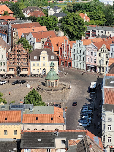 This tower in Wismar has a very beautiful view over the city centre and harbour. It's possible to see it only as a part of group tour. The group tours happen at the each full hour and cost 3 euros per person. The visit time is around 45 to 60 minutes and happens with guide and group. The stories told by guide take around half of the tour time, rest is used for climbing and taking pictures. It's rather not for English speaking people only, as the guide speaks only German. But if you're interested in seeing Wismar from above and seeing the tower from inside, it's...