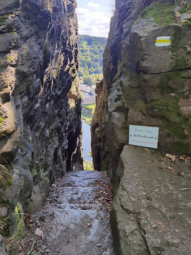 Read moreDie Wolfsschlucht ist für alle, die nicht gerade klettern, ein kleines Highlight. Man kann sie gut mit einer kleinen Wanderung verbinden. Wenn man das Auto auf dem Stadtparkplatz abstellt, läuft man Richtung Fluss, wo der Einstieg zum Wanderweg ausgeschildert ist. Da geht man die Wolfsschlucht von oben nach unten (ist weniger anstrengend) und läuft ca. 500m flussaufwärts, bis links ein Weg mit moderatem Anstieg wieder zurück in...
