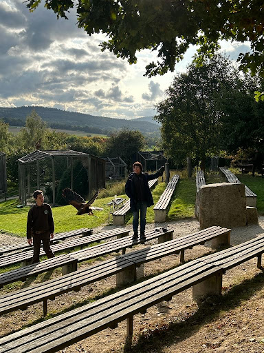 Read moreDie Zufahrt zur Falknerei ist etwas schlecht ausgeschildert. Da die Falknerei natürlich etwas abgelegen ist könnte man hier und da eventuell noch das ein oder andere Hinweisschild aufstellen. Aber vielleicht waren da auch welche die wir aber nicht gesehen haben. Wenn eben ein Stadtmensch aufs Land fährt 😂 Die Anlage ist sehr schön und sauber. Die Volieren sind ebenfalls sehr sauber und gut gepflegt.Die Leute waren alle sehr nett. Der Preis von 7 Euro (inkl. Flugschau) ist absolut angemessen und günstig. Der Unterhalt einer Anlage wie dieser und die Pflege und Zucht dieser edlen Tiere kostet nunmal Geld und da sollte man sich über 7€ für eine sehr sehenswerte einstündige Schau nicht beschweren. Das eine Falknerei an einer offenen Hangwiese liegt sollte auch klar sein. Ich besuche die Flugschau ja um die Vögel beim fliegen zu bewundern und nicht um zu sehen wie sie unter Sonnenschirmen umher laufen. Also im Bedarfsfall an Sonnenschutz denken. Die Schau bietet atemberaubend schöne Vögel die nur Zentimeter über den Köpfen der Besucher fliegen. Die beiden Damen haben die Flugschau sehr humorvoll und informativ gestaltet. Für Kinder gibt es auch noch einen kleinen Streichelzoo mit Ziegen und Mini Schweinen. Außerhalb der Falknerei liegt noch ein Imbiss mit öffentlichen Toiletten und ein großer Spielplatz. Uns hat der Besuch der Falknerei extrem gut gefallen und wenn wir wieder in der Nähe sind kommen wir...