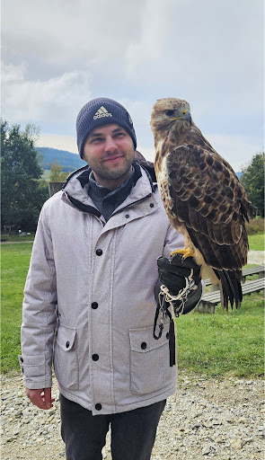 Noch ganz sehr beeindruckt von meinem Falkner-Erlebnistag kann ich nur Gutes berichten. Angefangen von den Tieren, die einen gesunden und entspannten Eindruck machen, von der kleinen aber liebevoll gestalteten Anlage des Parks und der Volieren bis hin zu den Gedanken und Entwicklungen, die hinter all dem stehen. Jonas, der Junior des Betriebes, ist mit den Tieren aufgewachsen und man spürt es ihm förmlich an, mit welcher Begeisterung, mit welchem Sachverstand und welcher Liebe er seine Vögel aufzieht, ausbildet und begleitet. Ein kleiner Tipp: Wenn ihr Bedenken bspw. wegen der Haltung der Tiere habt, sprecht die Mitarbeiter dort an. Sie werden euch erklären, warum alles so ist, wie es ist. Jonas hat uns zunächst ausführlich in die Theorie des Falkner-Wesens mit hinein genommen und sein Herzensprojekt, die Nachzucht-Volieren, gezeigt und erklärt. Nach einer Mittagspause, in der wir das Gehörte erst einmal sacken lassen konnten, durften wir, begleitet und angeleitet durch seinen Kollegen Michael, zum ersten Mal einen der Greifvögel auf der Hand sitzen lassen, was wirklich beeindruckend war. Gerfalke "Karin" und ich ganz nah - sozusagen Auge in Auge - ein unbeschreibliches Gefühl. Von Michael haben wir viel Wissenswertes über die Eigenschaften der einzelnen Vogelarten erfahren, während wir mit den Vögeln auf der Hand durch den Park geschlendert sind. Im Laufe des Nachmittags wurden wir beiden Teilnehmer in die Flugshow mit eingebunden und durften danach die etwas ältere und gelassene Wüstenbussard-Dame "Kitty" ein paar Mal zwischen uns hin- und herfliegen lassen. Als sie das erste Mal von meiner Hand los geflogen ist, war es ein, ich würde fast sagen, magischer Moment für mich. Ein Gefühl von lebendiger Natur pur... Auch dem mit Sicherheit innerlich "größten" Vogel der Falknerei "Herkules" und dem Karparten-Uhu "Clyde" durfte ich eine zeitlang die Hand reichen. Wie Jonas, so geht auch Michael ganz darin auf, um und mit seinen tierischen Partnern zu sein. Mein Fazit von diesem Tag ist ein strahlendes Dankeschön an Jonas und Michael und meine Achtung davor, was in dem Familienbetrieb seit 2007 dort entstanden ist, welcher Sachverstand und Geist dort weht und vor allem, wie sich Mensch und Tier dort begegnen. Eine klare Empfehlung meinerseits, sich einen dieser Falkner-Erlebnistage zu gönnen, schenken zu lassen oder zu...