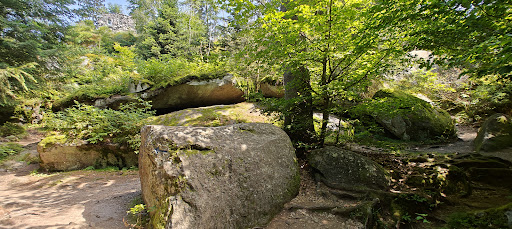 Read moreEin sehr weitläufiges Felsenmeer aus durch Verwitterung entstandenen Granitblöcken, die dann abrutschten und in scheinbar chaotischer Weise über- und untereinander liegen. Ähnliche geologische Formationen finden sich auch anderswo im Fichtelgebirge, aber nicht so geballt wie hier. Entsprechend früh wurde das nach Königin Luise von Preußen (Bayreuth war damals preussisch) benannte Blockmeer touristisch erschlossen und um 1800 in einen Landschaftsgarten verwandelt. Heute ist es ein beliebtes Ausflugsziel, besonders für Familien. Man läuft auf vorgebenen Pfaden, die auch durch enge Stellen, an denen die Felsen übereinanderliegen, und steile Auf-/Abstiege führen. Man sollte noch relativ fit und gelenkig sein. Es gibt mehrere Wegführungen und nicht immer sind die Wegweiser gänzlich eindeutig. Um die Besucherströme zu lenken, sind die meisten Wege aber als Einbahnstraßen gedacht, auch weil sie oft sehr eng sind. Das Navi hat mir doch sehr geholfen. Die Aussichgtspunkte sind heute oft durch Bäume in der Sicht eingeschränkt. Das (vielbesuchte) Gipfelkreuz an der höchsten Stelle, bietet aber noch viel Aussicht. Es gibt zudem einige benannte Formationen, die sicher recht hübsch sind. Durch die Vielzahl an Besuchern war nach meinem Geschmack das Naturerlebnis doch getrübt (ich war an einem Monat dort), an Engstellen konnte es zu Wartezeiten kommen und generell waren überall Menschen. Für Kinder ein ziemlicher Spaß. Der Eintritt kostet regulär 3,50€, der Parkplatz nochmal 3€. Das Restaurant anbei ist nicht gerade billig; ggf....
