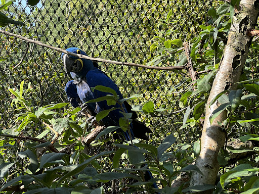 Die Voliere ist wirklich riesig. Es gibt einen kleinen Innenbereich, wo auch die Hyazintharas sich aufhalten.