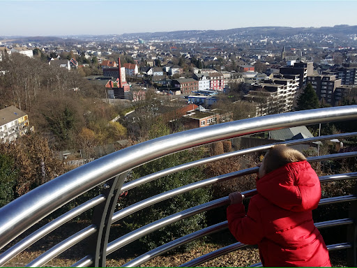 It is a large park on top of a hill, overviews g half of Wuppertal. Most of the paths are not paved, but are in a good condition enough that kids can roll with their scooter. There are at least 3 playgrounds. They all have sand. One is generic, one for 1-4 years old and one specialized for climbing and some assymetric rides. Next to 2 of the parks there is a more sport area with a 5x5 football court, a collection of gym instruments, an large asphalt flat area for kids with rollers, bikes etc At one end of the park there is also a pier with city view. Overall a great place to spend weekend noons on...