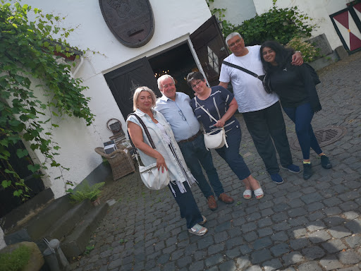Beautiful weingut with timbered house, outdoor and indoor seating. Very nice wine selection that you can buy bottles to take away or buy a bottle or glass of wine to enjoy at the weingut. The walk up to the weingut itself is very pretty with tables and chairs, flowers, and plants. The owner is very friendly and let me taste the wine before buying a bottle. Itβs self service at the counter. They offer chips, peanuts, goldfish to buy that are nice snacks to have with your wine. There are tables inside for the cooler or rainy weather. You can also sit up in the garden and over look the Mosel river right in the middle of the vineyards. This is also a nice place to sit and look across the river at Zell, the...