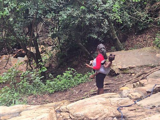 Ultimately, we settled for a smaller waterfall to the left as we entered the camp, where there's a small fee of 20 Ghanian Cedis per person to access the area. I have to say, it was a bit disheartening to find that there were no facilities available at the site. Thankfully, there was some water available, and I highly recommend refreshing yourself before tackling the uphill journey back—it took us about 30 minutes, and I couldn't help but feel exhausted by the end!