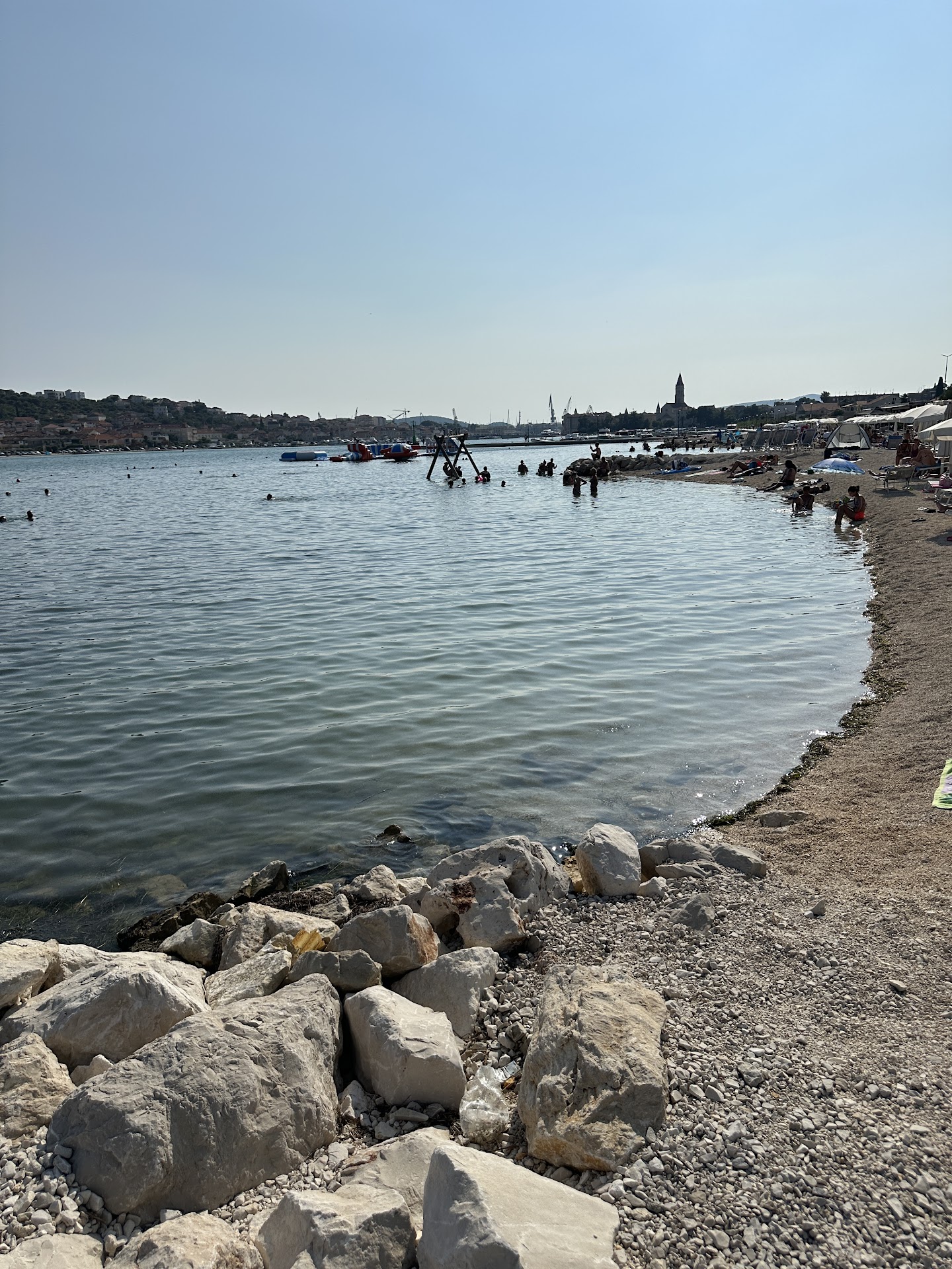 "Great beach within walking distance to Trogir, perfect for us who don’t have a car. It has all the facilities, shower, toilet, rental of water activities, café/bar, light food, beach service, and lifeguards. 30 euros for 2 sunbeds with a parasol (this was the price at most places we visited in Croatia). Some may think it's expensive, well, not compared to many places around the Mediterranean right now. I...