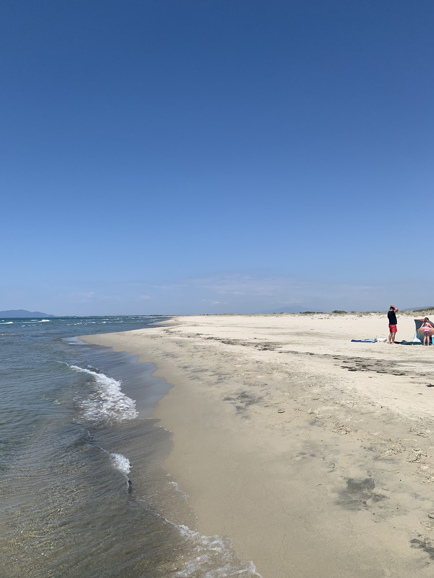 The fact that it has no big resorts or large hotels nearby, suggests less litter in the sand. It does not lack visitors, the large parking area is quite busy in the weekends, but it is by no means overcrowded.
