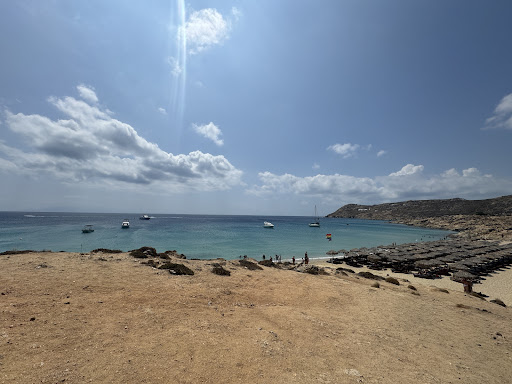 Read moreBeautiful beach with crystal clear waters. €70 for 2 front row sun beds with an umbrella was fairly expensive, but well and truly worth it for the view and the relaxation we experienced. The western end of the beach past the pride flag is very nudist friendly, and generally people who aren’t into that crowd will stick to the eastern end of the beach closer to the bar. You will still get waited on by the lovely beach from hospitality staff, and amazing drinks and food will be brought directly to your sun bed regardless of your level of clothing. The crowd were very respectful of one another, but if you’re after a quieter more secluded nudist experience you can walk over or swim around the rocky area at the end of the beach to find another small cove. More people tend to be fully nude in this area, particularly men, so be aware of what to expect. Overall this was an awesome first Greek nude beach experience for us and we will definitely...