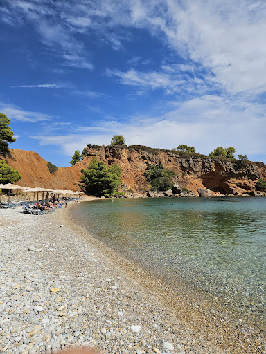 Read moreNice and clean beach with pebbles. We loved that there weren't to many people there and it was in general a quiet and cozy place. The color of the water was so clear and really enjoyable. Easy to reach from Alonnisos via e-bike, car or bus (would not recommend to walk there, as it gets too hot in the summer to walk). There are also beach chairs, great umbrellas (8€ fee per day), which can be used, as well as a small bar, where one can order drinks. Is definitely...