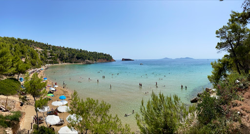 Read moreThe best beach in Alonissos as far as I have seen. Sandy with beautiful scenery on the sides, shallow at the start, suitable for playing etc, and deep with large rocks on the side, good for some snorkeling. There are some spots for umbrellas in between the seats of the beach bar. The parking is a bit tricky if you don't find a spot in front of the beach bar, since the road to it is not so suitable for a...