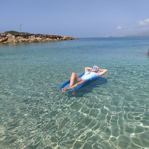 Read moreLovely little beach, no matter what time we went, there were always plenty of sunbeds. €12 for 2 beds and an umbrella whether you stay 2 hours or all day. There's a rocky part to the left corner which is great for finding crabs with the kids and other sea creatures. The water is shallow so the kids had loads of fun and enjoyed seeing the fish too. Snack bar is run by a lovely family, the daughter was so friendly and polite. The snacks and drinks are all reasonably priced. The only downside is there's no toilet but it was a 5 min walk from our villa so that didn't bother us. Great place to watch the planes take off too. (Don't worry we put the crab back where...