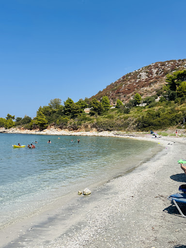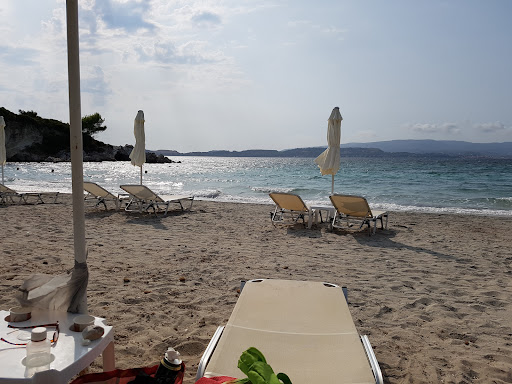 Read moreThis is a small beach and the chances are that the umbrellas will all be taken if you don’t get there early. We got there at 12 and none were available so we got some drinks from the covered bar (draught lager €5 for a pint €4 for a small) at about 2pm some people left and we nabbed a couple of loungers and umbrella €15. There is a Dolphin supermarket on the approach to the beach that sells folding parasols €15 so that’s always an option if you’re here for a while. We had a Greek salad there €8, which was nice enough. The water is clean and absolutely beautiful, you can swim out to a small cave, but watch out for the rocks underfoot. The beach is sandy but gets pebbly towards the shoreline, and there is the odd whiff of sulphur coming from somewhere, but all in all a very pleasant...