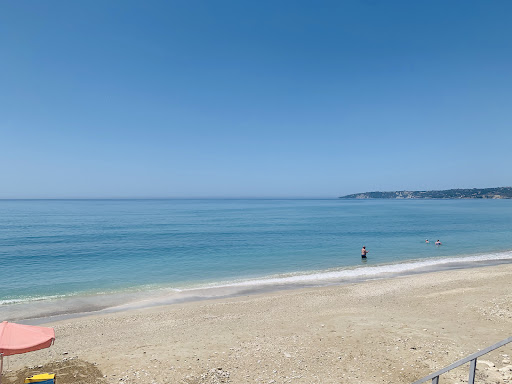 The combination of the crystalline waters and stunning mountain backdrop of Mount Ainos provides a dream scenery that captivates all visitors. The beach is covered with white sand and sunbeds and umbrellas. Not far from the coast lies the Monastery of Sissia.