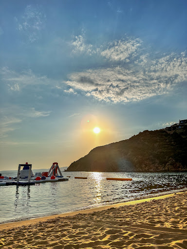 Read moreComments about the umbrellas and the beach bar: unpleasant attitude from the waiter first line umbrellas 15€; umbrellas are small and very close to one another; this was the first time we pay in Greece; much better to be with minimum order - 50 or 80 euro which we spend anyway; next lines are free and therefore “reserved” with towels without people lack of music; annoying music from the aquapark lack of system to order or call waiter (as for example on Salt on Alikes) cantina is not organized at all; self-service; all tables taken by playing kids;
