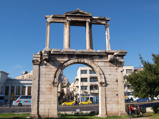 Read moreThe Arch of Hadrian in Athens is a monumental marble arch, built by Athenians in honour of their philhellene ruler, the Roman emperor Hadrian. The triumphal arch lies in proximity to Syntagma Square, right between the Acropolis and the Temple of Olympian Zeus. Made of fine Pentelic marble, it is 18meters high, 12.5meters wide and 2.3meters deep. Its architecture is similar to other Roman arches and it is crowned by pilasters of the Corinthian rhythm. Its design is fully symmetrical.