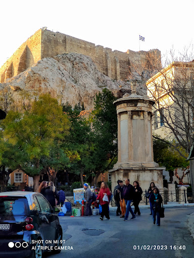 Read moreIn the area of Plaka, on the wñest side of the ancient Street of Tripodon, is this impressive cylindrical Choragic Monument 6.50 meters high, built on a square plinth of porolite, with six Corinthian style columns of Pentelic marble. It has a frieze with scenes from the life of Dionysus. It was built by Lysikrates in 335-334 BC. in order to support and display the bronze tripod given to him as a prize for winning the musical performances at the Theater of Dionysos, of which he was a sponsor. In ancient times, the sponsors were wealthy Athenians who undertook the expenses of holding dance and theater competitions and when they won the competitions, they were rewarded by the city with a bronze or gold-plated tripod. They built sponsorship monuments dedicated to Dionysus and placed their prize, the tripod, on top of them. Tripodon Street got its name from the placement of these tripods on the right and left of the street. It is the best preserved example of a choragic monument. It is the center of interest of the homonymous square. It has a very fascinating history. For this reason I give 5 stars. Nice environment, many restaurants, cafes, shops and a view of...