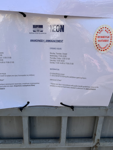 Read moreLike so much else in Athens, the information given here on Google maps and in other tourist guides is wrong. The hours are completely different AND you must book a visit IN ADVANCE at (maybe) neon.artsvp.co or you can try neon.org.co (So… the guy at the door says, “We open in an hour. Why don’t you go to the kafenion down the road and wait a bit…?” Should I do it? I’ll...