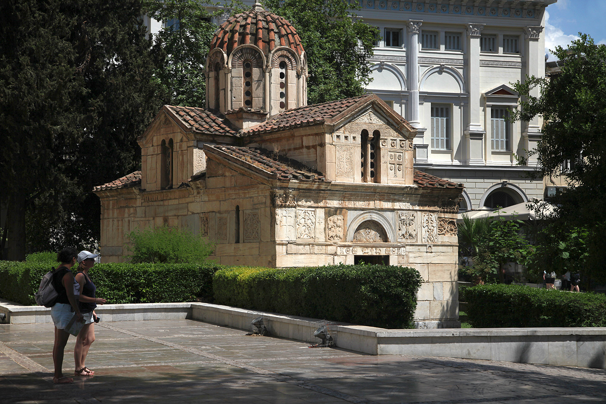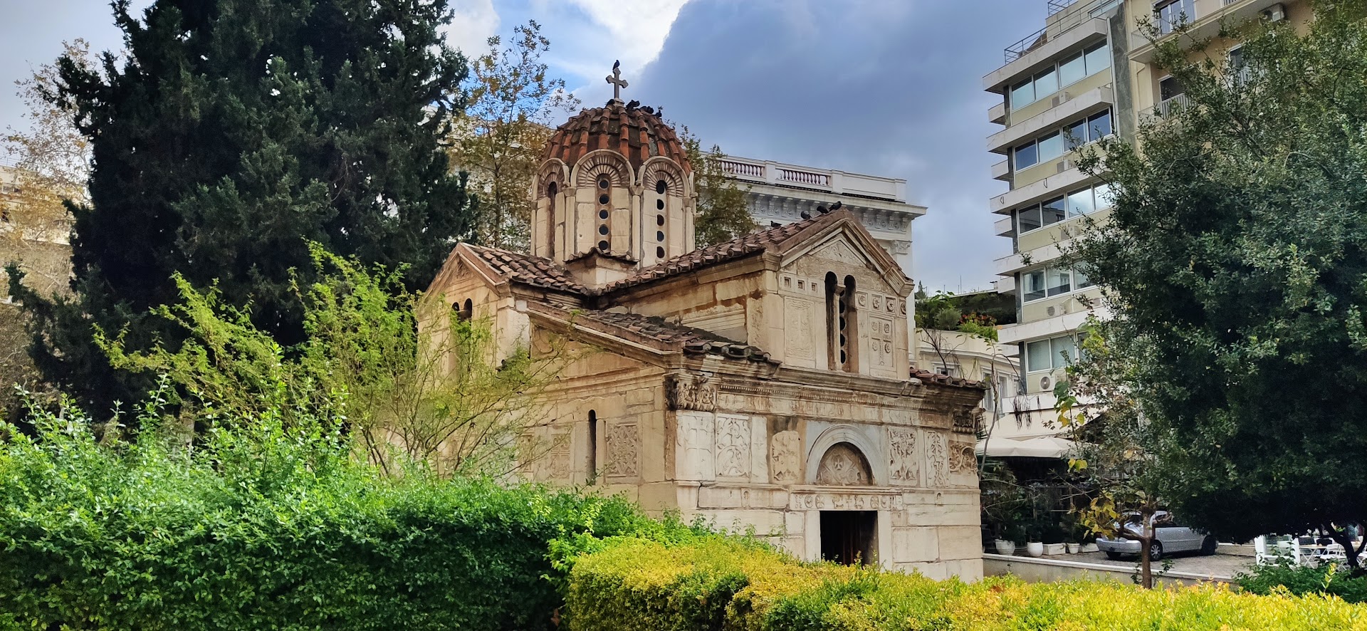 The Little Metropolis formally the Church of St. Eleutherios or Panagia Gorgoepikoos (She who is quick to hear) is a Byzantine church located at the Mitropoleos Square next to the Metropolitan Cathedral of Athens at the feet of Plaka neighborhood. It is a small temple of unique architectural and decorative style and is considered one of the finest ecclesiastical edifices of Athens. The church is built on top of the ruins of an ancient temple dedicated to the goddess Eileithyia, the ancient Greek Goddess of childbirth. The exact date of its construction remains unknown but is generally estimated to have been around the end of the 12th century AD. Originally dedicated to the Panagia Gorgoepikoos after the miraculous icon of the Virgin Mary that once laid here, it acquired the name "Little Metropolis" because this church is located next to the Metropolitan Cathedral of Athens. The Little Metropolis church was consecutively used as a warehouse for relics and antiquities as well as a public library of Athens from 1834 until 1863, when it was re-dedicated as a church, first to Christ the Saviour, and then to Saint Eleutherios. In 1856, the church underwent restoration to its original. The church has a typical Byzantine layout, being cross-in-square, with a three-aisled nave with the central aisle higher than the flanking ones.The octagonal dome was originally supported by four columns, but these were replaced in the 19th century by piers.It is a small structure, just 7.6 metres long and 12.2...