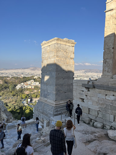 Read moreEst situé à l’entrée principale de l’Acropole d’Athènes, non loin des Propylées. Il s’agit d’un haut socle en marbre datant du 2ᵉ siècle av. J.-C., initialement construit pour supporter une statue offerte par un roi de Pergame, probablement Eumène II.Au 1ᵉʳ siècle av. J.-C., la statue fut remplacée par un char de bronze représentant Agrippa, gendre de l’empereur Auguste et général romain. Ce changement reflète l’influence croissante de Rome sur la Grèce et l’utilisation de l’art pour souligner les alliances politiques.Le piédestal, haut de plus de 8 mètres, est encore debout aujourd’hui, bien que la statue ait disparu. Il offre un bel exemple d’art de propagande antique, au croisement de l’histoire grecque et romaine. Sa position stratégique, visible dès l’entrée sur le rocher sacré, renforce son importance symbolique.Élément discret mais fascinant de l’Acropole. Le piédestal attire l’œil par sa hauteur et sa simplicité. On sent le poids de l’histoire impériale dans cette pierre. Une belle leçon d’archéologie visible dès les premiers pas sur le site. À observer en montant vers...