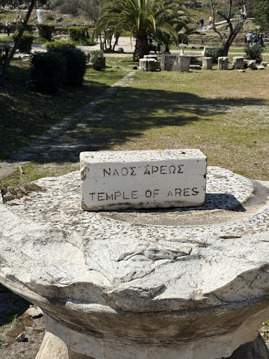 The Temple of Ares was a Doric hexastyle peripteral temple dedicated to Ares, located in the northern part of the Ancient Agora of Athens. Fragments from the temple found throughout the Agora enable a full, if tentative, reconstruction of the temple's appearance and sculptural programme.
