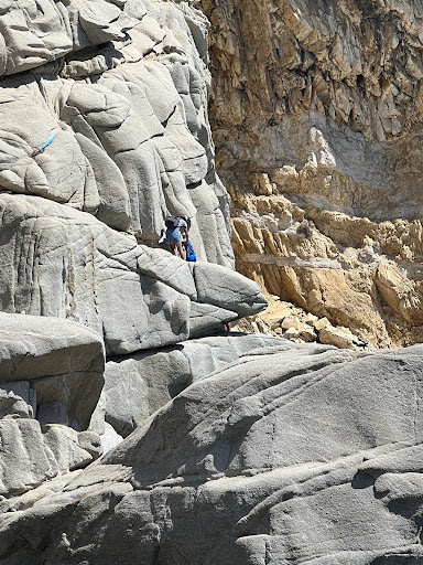 Read moreBeautiful beach but very hard to get to if walking. We tried to find the path yesterday and got down to the huge rocks at the bottom of the trail but the sea was too rough so we gave up. Today we managed to carefully follow the white arrows and when you get right to the very bottom you either have to walk a very narrow dangerous path over a huge boulder or you zig-zag down to the bottom of the boulder and have to step into the water about .5m deep. Once on the beach it is beautiful with very clear water. The beach is now much smaller than years before and the ladders, bridge, and platform you see in some older pictures are not there any more. Its very isolated but there is some shade from the huge overhanging cliffs. Definitely worth the treck but...