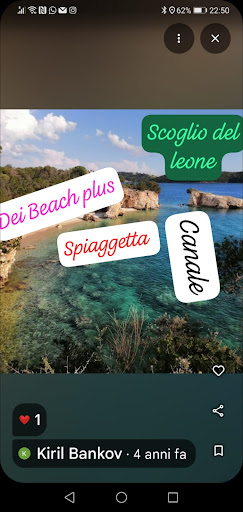 Read moreSpiaggia sia attrezzata che libera con un mare fantastico. I posti auto per il parcheggio libero sono pochi e quindi si deve arrivare presto. Se volete prendere gli ombrelloni a pagamento si parcheggia sul lido nella pineta. Attenzione che la spiaggia libera é poca sia a sinistra del lido che soprattutto a destra. Armatevi di pazienza perché gli ombrelloni non si piantano perché a terra è roccioso e quindi aiutatevi con le numerose pietre che troverete sul posto posizionandole ai lati dell'asta. Una volta in mare sulla vostra destra proseguite a nuoto di fianco alla roccia ed ad un certo punto troverete un passaggio, dove c'è anche piede, dopo si divede il costone con un altro scoglio. Proseguendo ancora sulla destra giungerete ad una piccolissima spiaggetta dove arriva il sole solo in tarda mattinata. Proseguire ancora e troverete la spiaggia Dei beach plus. Ora sulla vostra destra, con quest'ultima spiaggia alle spalle, potrete nuotare fino alla scoglio che fa ad angolo per poter salire e fare meravigliosi tuffi. Una volta arrivati in cima sedetevi per godere della magnifica vista del mare che si manifesta davanti a voi e delle barche che si sesseguono in entrambi le direzioni. A questo punto goderete anche della vista dello scoglio, che da questa posizione sembra un leone in posizione di riposo, che vi siete lasciato alle spalle e visto che dovete tornare indietro ripassando il piccolo canale dirigetevi proprio su quest'ultimo scoglio pet salirci sopra per dopo riscendere a mare e tornare al punto di partenza. A proposito di questa ulteriore spiaggia denominata Dei Beach plus è raggiungibile da dove siete giunti con l'auto e avete notato davanti a voi,prima di svoltare a sx per il lido, una stradina in salita dove ci passa solo un'auto per volta. Provate a percorrerla e dopo pochi metri troverete uno spiazzo dove poter parcheggiare circa 5/6 auto e avventuratevi sul sentiero alla vostra sx dove ad un certo punto se proseguite a destra vi troverete nella parte scogliera per i tuffi mentre proseguendo a sx vi troverete una specie di scala creata con tronchi di legno per accedere alla spiaggia Dei Beach plus....