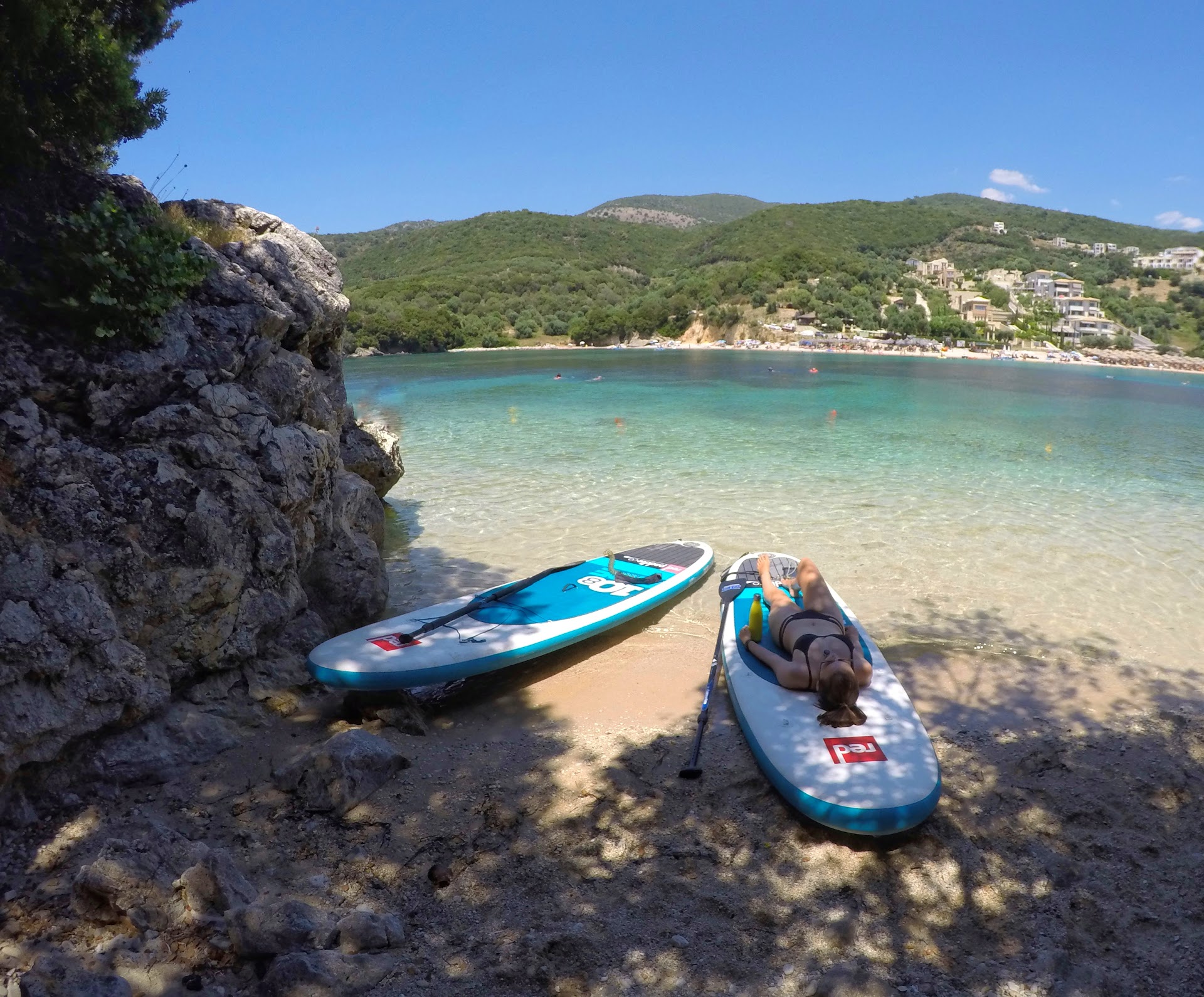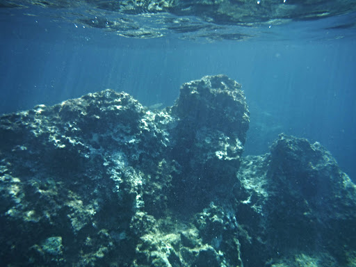 Mega Drafi or Mega Trafi is a small sandy beach in an open bay. You can reach the beach by car. The beach is organized and there are also a beach bar. There are small pebbles in water in the first 5 meters but after that there are only big boulders. The water was very clear, at least 15 meters visibility. We had here three rounds of snorkeling with a total of almost 4 hours in water. On the right side the water is deep and very deep and the rocky shore is going vertically into the water directly to minus 5-8 meters. There is no shelter and no bottom platform to rest at least for 400 meters. If there are waves the snorkeling will not be pleasant near the shore. The underwater landscape is nice with this rock walls going down directly to the bottom of the sea. On the left side you have more resting opportunities because the shore line is not more vertical in water. After about 150 m you rich a small beach (Micro Trafi) with some coves on the beach left side. After another 300 meters you can rest on another very tiny beach there is in a very narrow small bay. On my snorkeling marking scale the score for Mega Drafi (TrafI) Beach is 4 from a maximum of 5 points. It is the best snorkeling beach closer to Syvota (4 km)...