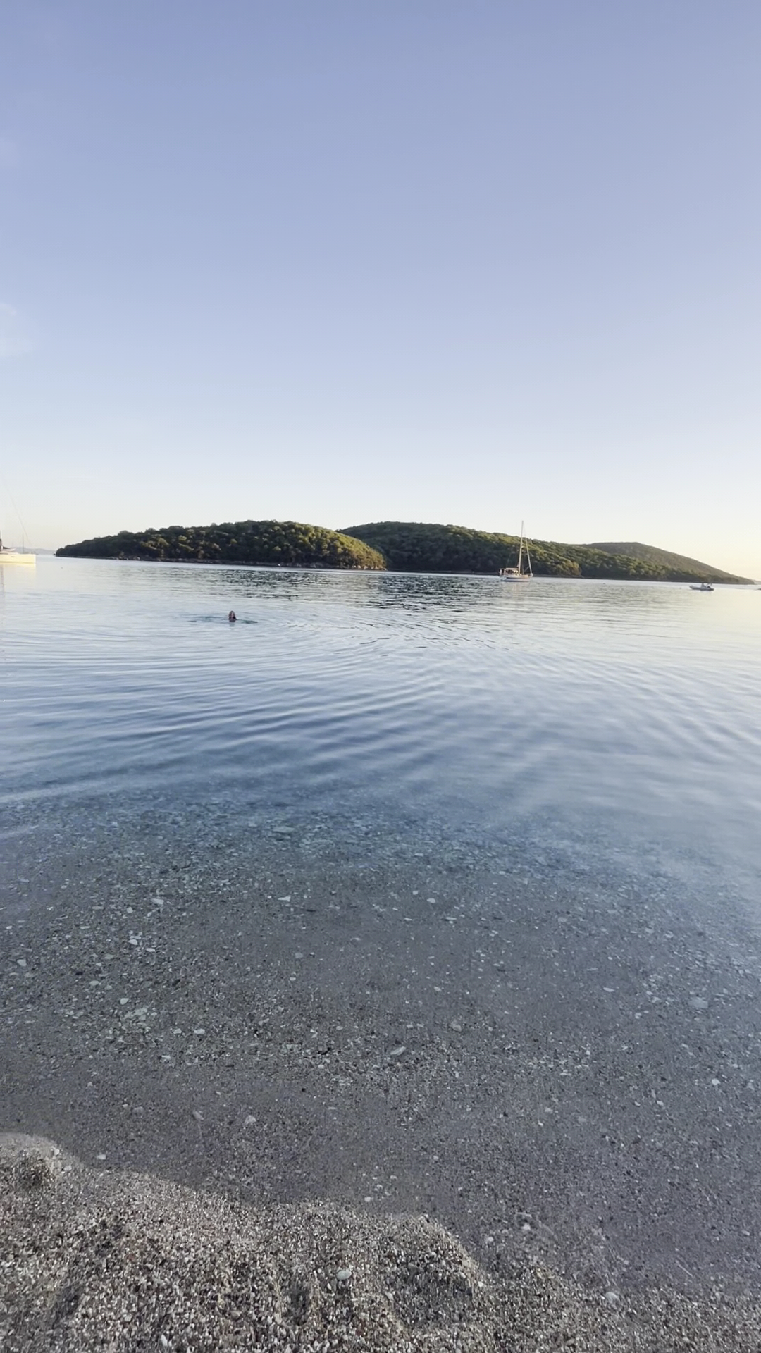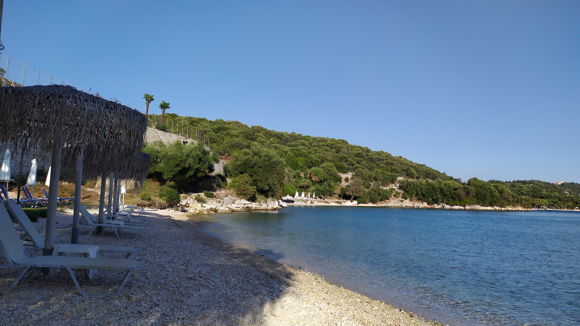 Nice little beach near Sivota, it sandy in a corner, but the rest of the beach is with small sharp pebbles. There are pebbles also in the water for about 2 meters, after that the sea bed is sandy. The water is clear and beautiful and the scenery is very nice. There is also a renting point for motor boats and pedal boats. Half of the beach is administered by a taverna/bar with decent prices that offers drinks as well as sandwiches. Two sunbeds and an umbrella are 5 euro and in the price you get a big bottle of iced water. This place is good for families with kids because the water is still and shallow, if one gets over...