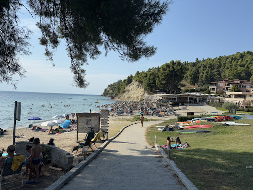Read moreThis beach has clear blue water, however to get inside you have to cross a stoney path. One definitely needs bathing shoes of some sort, otherwise the stones cut into your feet in no time. Once one has crossed the uncomfortable stone path the feet are welcomed by a sand bank. This is where one can swim freely without any issues. Unfortunately the coast is also very untidy along the shore with alot of sea weed which has been washed up. Due to the loud music playing from the bar, I recommend settling down a little bit away where the forest starts. From there you can have your...
