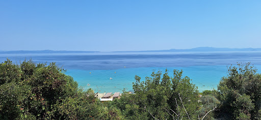 A great beach with a lot to offer. It has both sunbeds and umbrellas, a couple of beach bars too. The sand is fine but the entry into the sea has pebbles for a couple of meters. The water is crystal clear and not abruptly deep. To the right as you look at the sea is a more quiet and empty area next to the rocks which is perfect for escaping the noise. It also has quite a few rocks in the water which makes it a great place for snorkeling since there are lots of fish there. This part of the beach is also naturally shaded by the trees behind so you can spend all day here. Definitely the best beach...