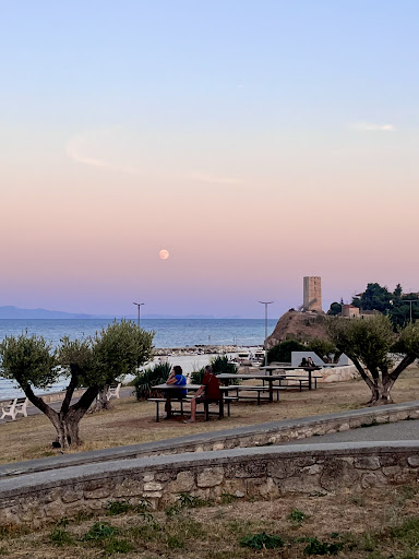 Read moreAlso irgendwie wird hier wieder mal einiges durcheinander gebracht. Wir waren im Oktober 2025 vor Ort. An dieser Stelle gibt es keinen Strand zum Baden ! Links vom Byzantinischen Turm, also nördlich liegt der kleine Hafen mit Tavernen, kein Strand. Rechts vom Turm, also südlich davon ist Steilküste und man blickt gen Osten. Also nichts mit Sonnenuntergang! Es gibt wohl nur einen Ministrand unterhalb des Turmes, den konnten wir aber nicht finden und wenn nur zu Fuß zu erreichen.