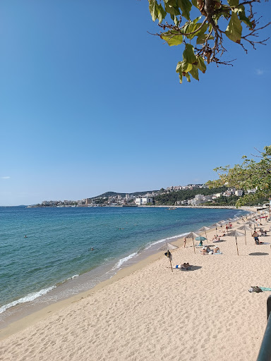 The beach features fine golden sand and clear, shallow waters, making it perfect for swimming, sunbathing, and family-friendly activities. The cleanliness of the water and beach area has earned it a Blue Flag status, symbolizing high environmental and quality standards. The beach is equipped with sunbeds, umbrellas, and changing facilities, along with several beach bars and cafés where visitors can enjoy refreshments and snacks.
