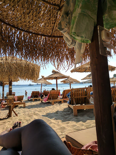 Read moreWhile it’s nice to have beach loungers, they are absolutely overpriced at 40 euros per set, the umbrellas are not all high quality meaning there are pieces missing and therefore not providing full sun coverage but the water is the biggest reason for why you shouldn’t come to this beach….the amount of trash in the water was shocking, pieces of plastic, paper, etc. it was the least clear I’ve seen of any ocean water in Greece. The restaurant attached is fine for a meal but I wouldn’t bother...