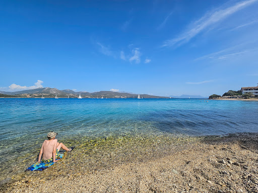 Read moreLots of little rocks on the beach, but you have a big portion with sand in the water. The colour of the water is not that great, but it is teaming with life. There are bars that offer you a umbrella as long as you order something from them for 5 euros, enough for a frappé and an orange juice. The best advantage is that there are some big trees nearby for you and also for your car. There is street parking, be careful if crossing, it is...