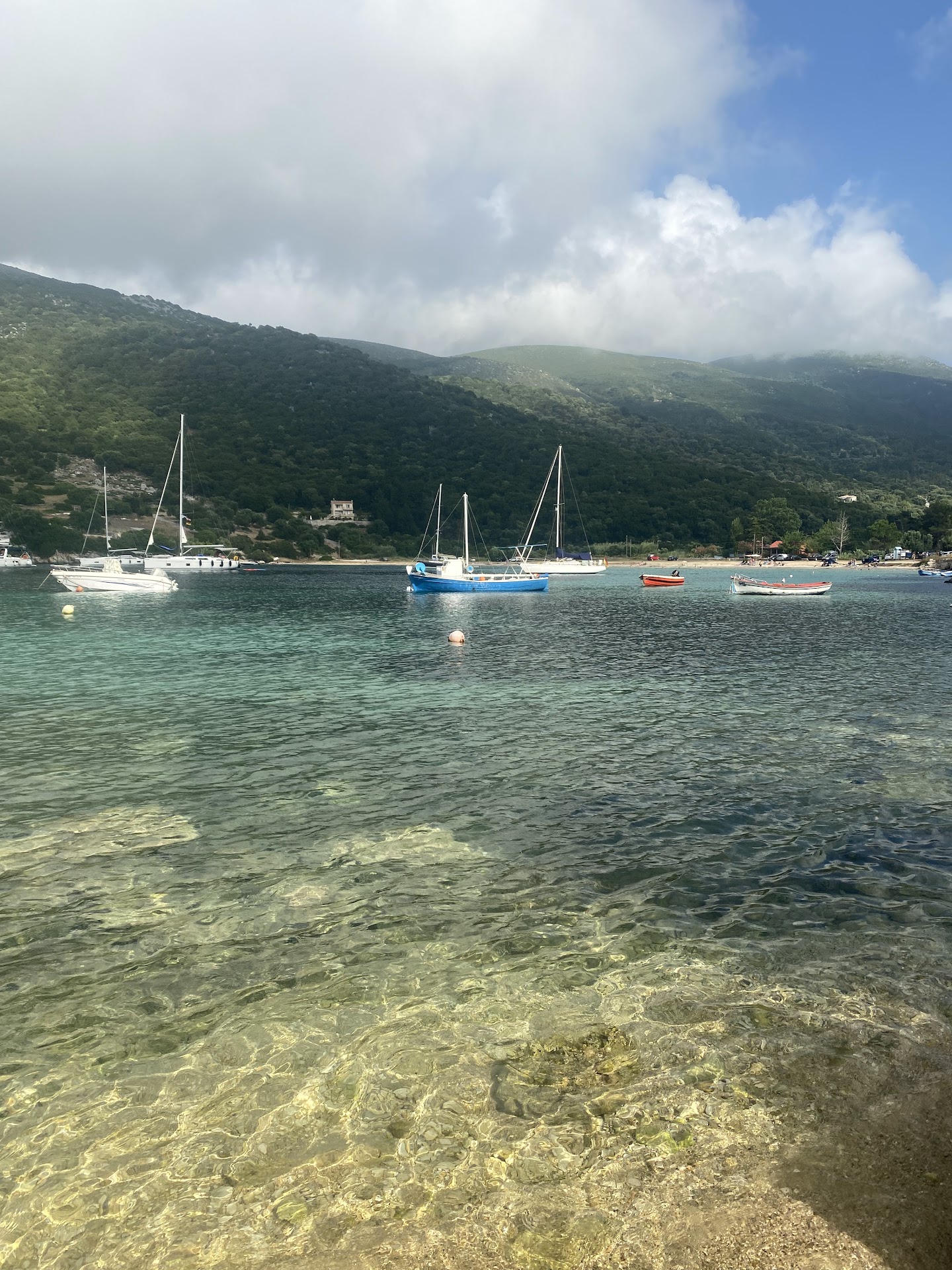 There’s a great little beach restaurant with a nice selection of fresh fish, and they do takeaway freddo cappuccinos too, which was a treat. You can even rent a boat here if you’re up for a bit of adventure.