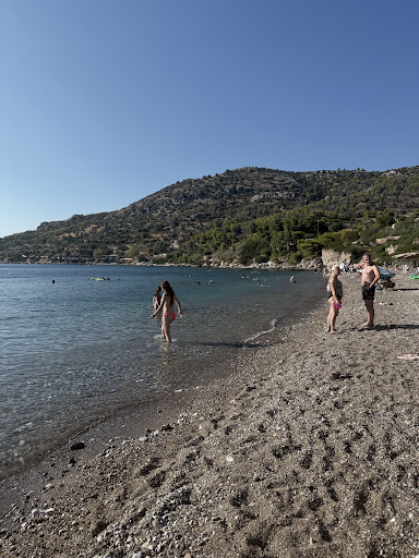 Well I'm here now...its clear water, it's warm,it's not busy..free chairs with a coffee etc. But man there are BOULDERS here...not stones or soft pebbles...like in Amirya Beach. Here there's dam boulders in the water so big and various sized you can't stand without misstepping as the waves hit you. And theyre nor steady either...the most horrendius ocean floor so far..and I've done 5 beaches in 5 days in Corintho including Tolo... The sand shore is jagged stone with pebbles very rough to step on...bring beach shoes. I came here for the sunset..the kids are having fun but as a comfortable beach to walk-on beach...forget it...go...