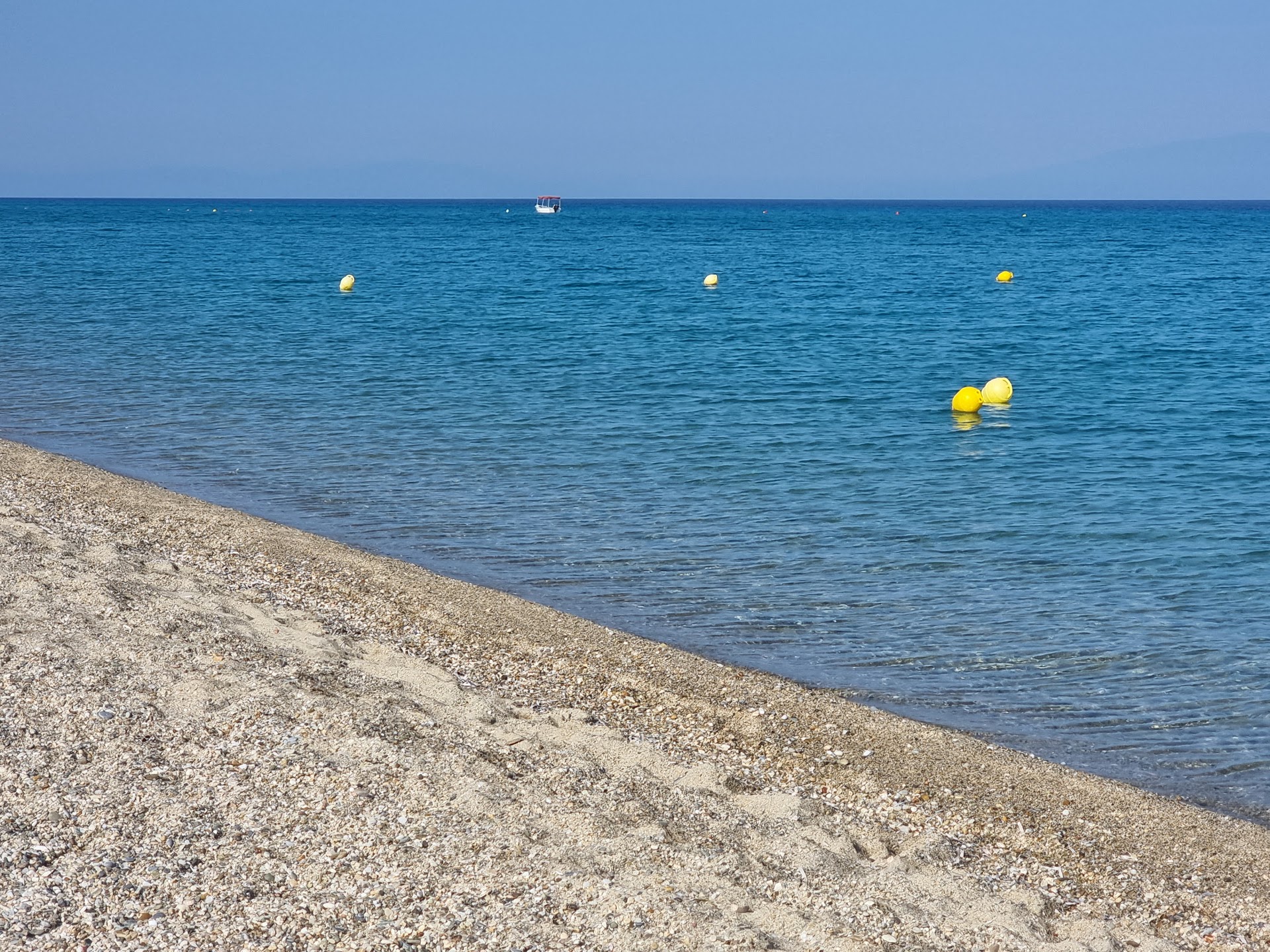 Mýti Poseídou Beach is a large sandy beach located on the first peninsula of Halkidiki. The beach is known for its crystal clear water, which has a bottom made up of small pebbles, followed by white sand and a large rock at the end. This makes it suitable for both children and adults who do not swim at all. The beach is also known for its beautiful sunsets, which can be seen perfectly from the beach. The beach is accessed via a dusty road and is a bit crowded. It is not organized and can be uite windy. Despite this, the beach is clean and very beautiful. However, the sea is deep almost from...