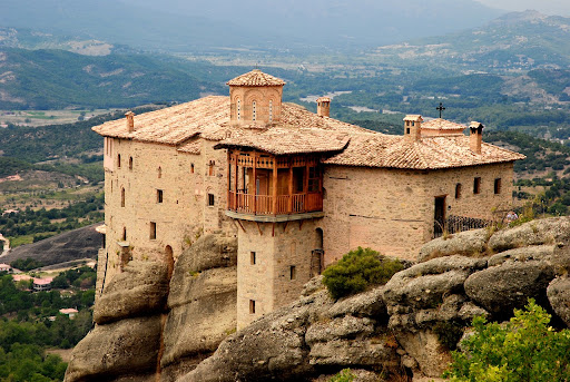 The Holy Monastery of Rousanos, also known as Saint Barbara, is one of the notable monasteries in the Meteora complex in Greece. Perched on a high rock, it offers breathtaking views and a unique monastic experience.