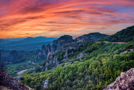 Arriving just in time, we were greeted by a sight that was nothing short of breathtaking. The observation deck, perched on a rugged rock formation, provides an unobstructed view of the entire Kalambaka valley, the majestic rock pillars, and the ancient monasteries that appear to defy gravity as they sit perched atop these natural wonders. Bathed in the golden hues of the setting sun, the landscape took on a mystical quality that no words or pictures could fully capture. The sheer scale and beauty of the scene before us left us in awe, a reminder of why Meteora is often referred to as a place where heaven meets earth.