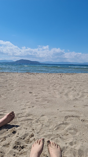 Read moreThe beach is small but nice, shallow, ideal for kids. Unfortunately only one shower on the parking that we weren't allowed to use by the two blondies who take the money for the sunbeds (15 euros per set). I think it is because we didn't use the sunbeds and didn't pay BUT we go to take drinks and food from the cafe every day. We don't use the sunbeds because one of our kids is autistic and doesn't like to stay on such public places. We go early before everyone and even the cafe starts working after our arrival. And the most unpleasant was when they started giggling when my husband asked to let the water run because we wanted to wash the kids after leaving. Come on, it's 2025, how much more do we have to pay...