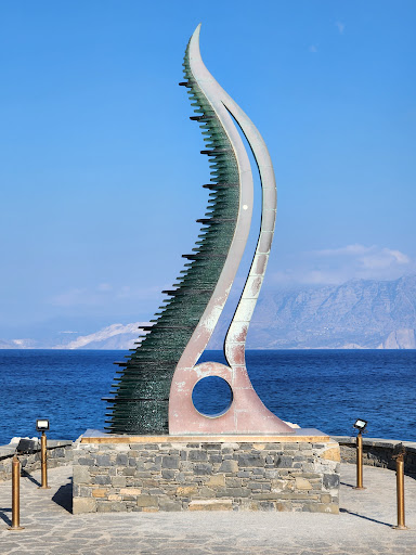 Another amazing statue by the sea, depicting a modernised mythical item. This is the horn of Amaltheia. When Zeus was born and had to be hidden from his father, Kronos, in the cave of Diktaion Adron (also located in Crete), Amaltheia was the goat that fed him with honey and her milk. Strong as he was, baby Zeus accidentally broke off her horn while playing and, since then, that horn provided an endless supply of food, just like Amaltheia provided for the young god. Since then, the horn of Amaltheia (also known as Cornucopia) is a symbol of wealth, abundance and...