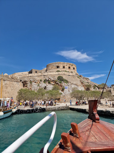 Interesting trip. I parked at Plaka and got the 10 mins or less, small boat - €12 return. It's a interesting visit, but not a lot to see, and a VERY expensive snack bar also took the shine off a little. Worth a visit for an hour. Better to read up before you go and or take a guide book to make the most of the trip. You have no idea which buildings are from which occupation from 1500s to date, nor what many of them were or are. The most common sign is "danger", usual next to some unrestricted stairs or path 😂 Long history, first fortified in mid 15th century, then by various empires until becoming a leper colony from 1903 to 1957. After a damning report around that time by a medical expert, the island leper colony was closed, and people treated and or moved to Athens hospital. Apparently the government proceeded to destroy much of the evidence of the leper colony until the 1980s when it became a tourist trap and restoration of SOME of the mostly derelict buildings is under way. There are some information boards, but they didn't have any English guide books / maps. Sad that in the 80s people desecrated the graves for sick souvenirs, so the remains...