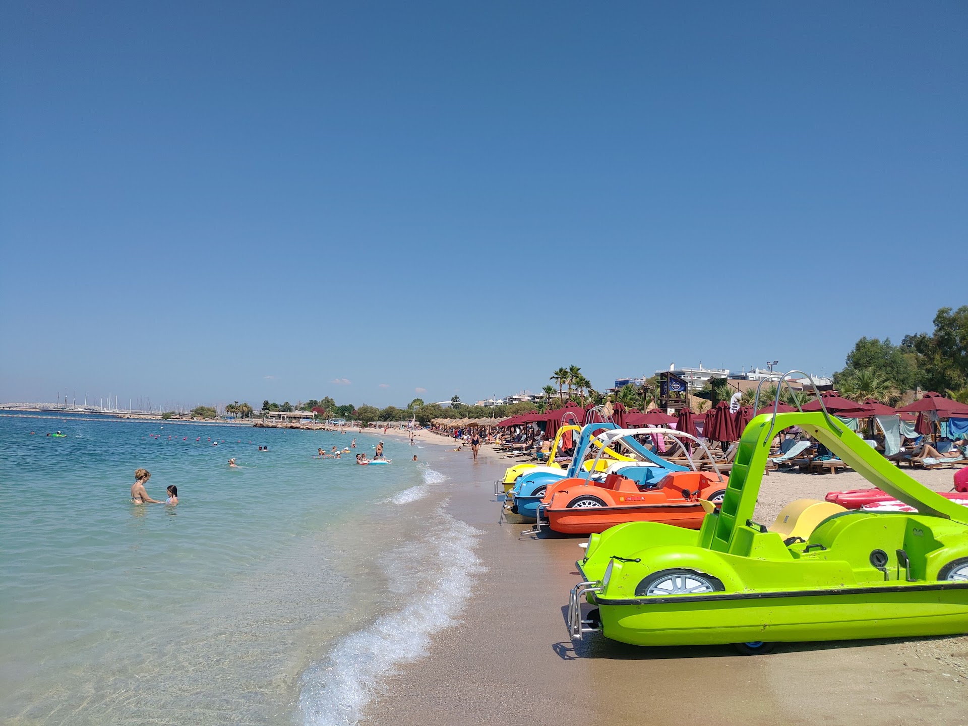 Really nice beach. I spent 8€ for entry and 5€ for a sun bed(you can't book them in advance, only the luxury ones for 25€) including an umbrella. I came on a Thursday around 11am and there were plenty available all through out the day. The beach was really clean and got cleaned in between. You could order food and drinks (quite expensive) from your sunbed, but it was no problem if you brought your own snacks and drinks. The water was incredible, you couldn't swim so far out that you couldn't see the ground anymore or the fishes, that's how clean the water was. There were amenities like changing rooms, toilets and showers. You could rented little boats with water slides on them and there was a giant water park float a lot of teens enjoyed. While it was kind of crowded on the beach and in the water were you could stand it was nearly empty further out. The beach was easy to reach by a bus from syntagma square. The only negative sides were that there was really loud music blasting, I had to use noise cancelling headphones to relax at the beach and I could still hear the music. You could hear the music really loud from anywhere in the water. And when it became evening they went (around 6-7pm) they went around and started closing all the umbrellas, even the one I laid down under for sun protection. The staff came around multiple times to close it and I told them each time to leave it open. 3min later they were back again trying to close it. I had to get up multiple times to put it back up again and even injured myself doing and even then they just came back...