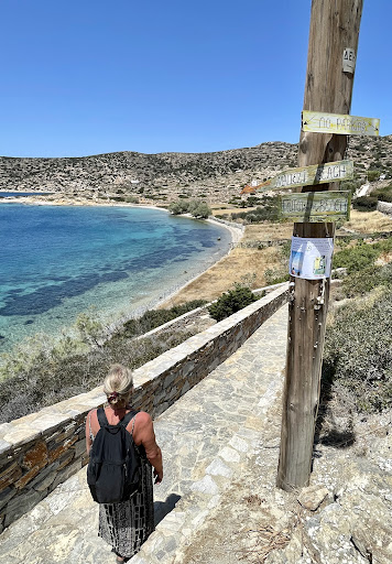 A really beautiful, clean and sandy beach. Sunbeds and umbrellas available. Beach bar in season. You may take water taxi from Katapola port both ways. You may also walk. If you decide it is 45 min from Katapola port. Google map misleads you. When you reach the signs telling you to go along the beach - that is why you should do so. When coming to the iconic small church you cross to Paralia Maltezi. Walk along this stony beach and climb up the rocky hill. Follow the green painted arrows. When on top the bravehearted can walk down the cliffpath to left. The more defensive (like me) follow the stone fence more interior. Any way you choose - your choice of beach is...