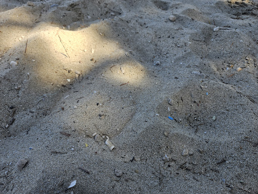 The main beach near Aegeali; a long family friendlysandy beach;the beach needs cleaning; the sand is mixed with cigaretre butts, stones, plastic, seaweed/wooden debris... plenty of tamarins that provide shade; a cople of tavernas/beach bars in the vicinity. The water is shallow, sandy bottom; has good visibility if there are no waves...managed to spot my first sea robin/gurnard here. A nice spot to relax but nothing...