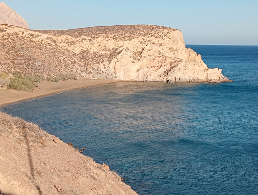 Read moreSpiaggia visitata il 10/9/2025. Si raggiunge con breve cammino (circa 10') a piedi dal porto di Anafi, seguendo il sentiero n.1 Spiaggia di sabbia non finissima, abbastanza scura. Lunga e ampia, con molte tamerici che offrono ombra. Degrada dolcemente e per lungo tratto l' acqua resta bassa. Come tutte le altre spiagge della costa meridionale è discretamente riparata dal meltemi. Anche in questa spiaggia, come in quasi tutte quelle di Anafi, è possibile trovare persone che praticano il nudismo. Poco sopra la spiaggia ci sono due bar-taverne, Margarita's e The mule...