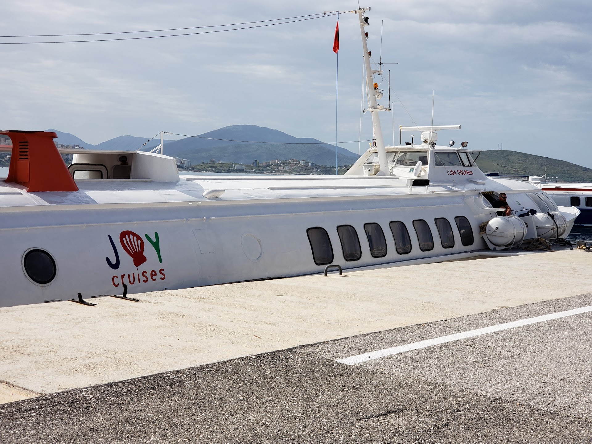 Read moreReading the reviews, after booking tickets on Finikas Lines Corfu-Saranda return, I was worried. I read you had to have a printed ticket, there were no signs, multiple delays and no toilets. All incorrect. We arrived an hour before we were scheduled to leave, as indicated on the ticket. Go through the gates at the international terminal and turn left. Walk until you reach the orange brick building. Go around the left side of the building and through the doors marked ‘to Albania’. There you will queue for passport control. There are toilets in this area. You show your ticket (I showed my phone) then join an EU or all passports queue. You hand over your passport to get stamped. There was someone ahead of us that was non-EU but did not get a stamp when entering Corfu - he was just ask for proof of his flight (aeroplane ticket, boarding pass). Once through passport control, there’s a little shop, another toilet and some seating. We were on the boat within 25 minutes of arriving at the port. You carry your own bags on board, but there is someone to take them from you to store. You show your ticket again when boarding. There were lots of seats on board. We sat in the main cabin but there is a door at the back with more seating and I think there was seating upstairs. We...