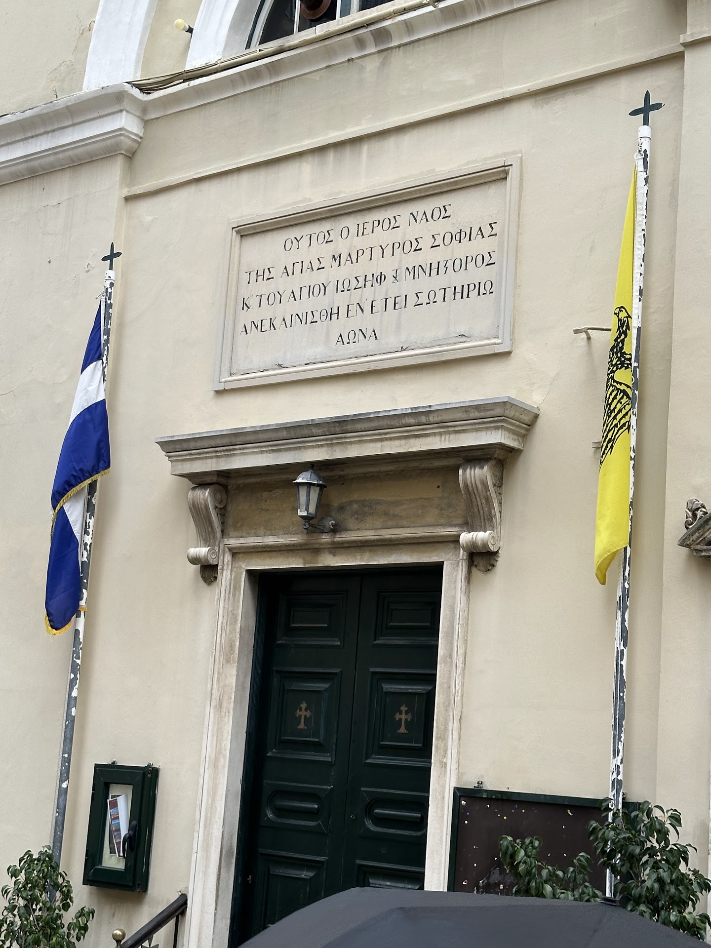 After having viewed Saint Spyridon, I sat in the back of the church taking it all in. A little girl came to sit in my aisle, giggling and swinging her feet, nearly knocking over a lamp that looked more expensive than anything I could comfortably afford. Moments later her mom came over, checked on her, then reached out to me holding a basket asking for a donation for her and her child to which I obliged and they departed.